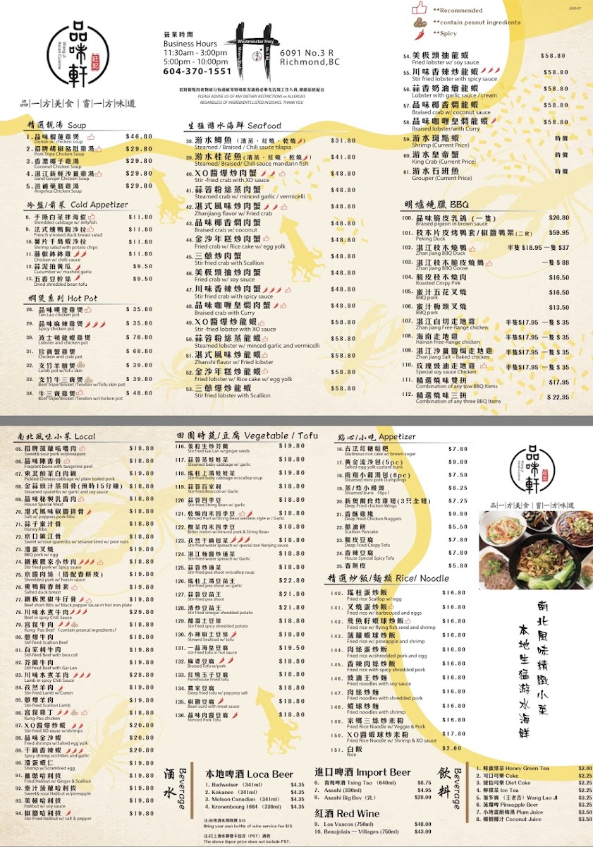 Menu - Wang Ji Asian Cuisine