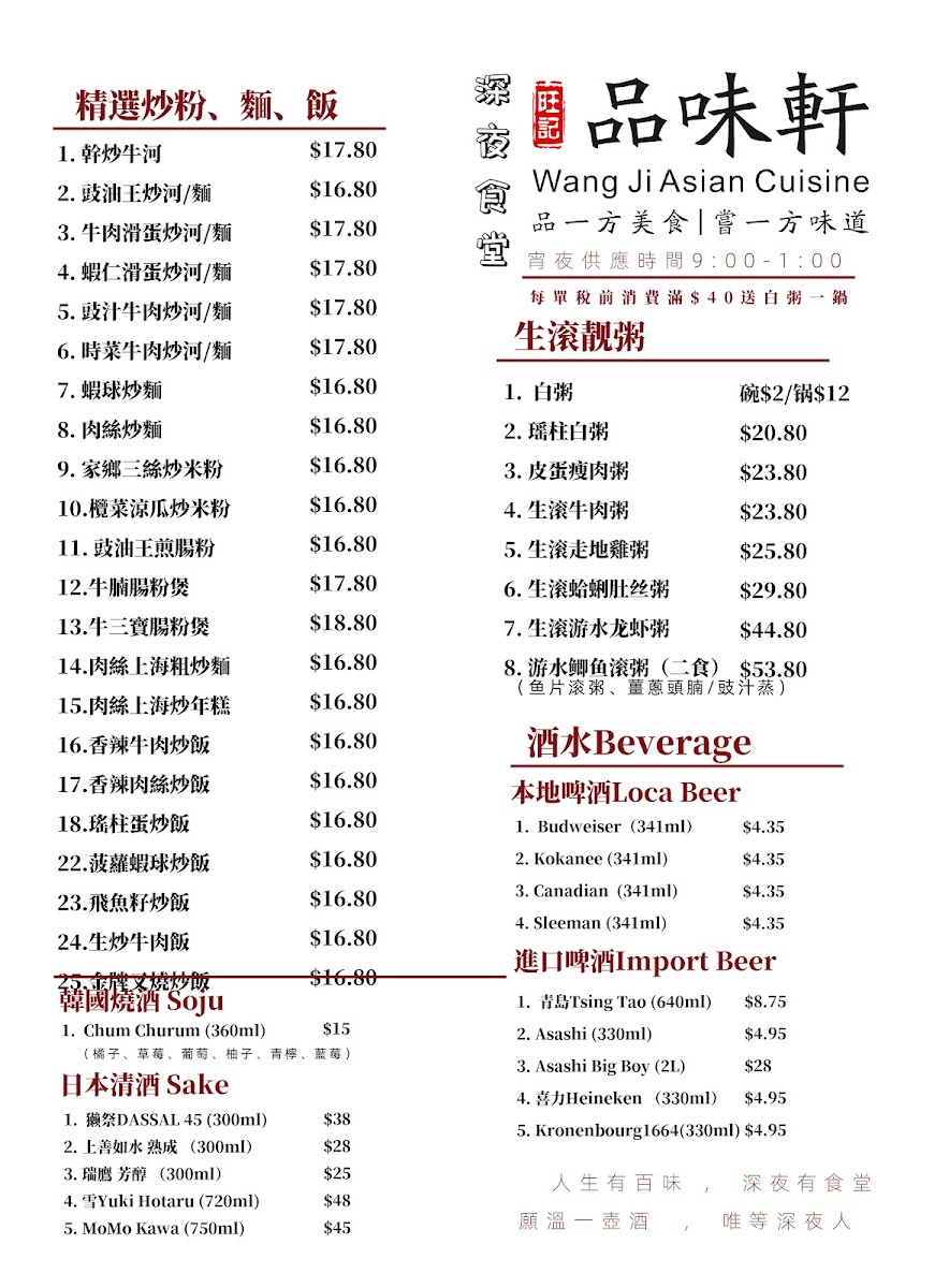 Wang Ji Asian Cuisine Menu